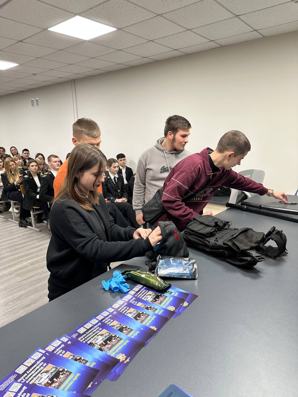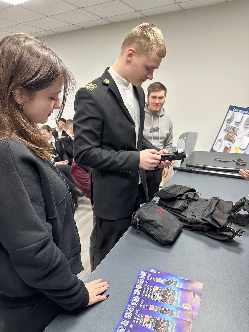 У студентів бакалаврату була можливість ознайомитись із повноваженнями та функціями цього органу. Інженер пункту централізованого спостереження УПО Владислав Дудар розповів про те, яку охоронну діяльність здійснює Поліція охорони,продемонстрував основні засоби технічної охорони. Також студентам показали амуніцію поліцейського Поліції охорони.