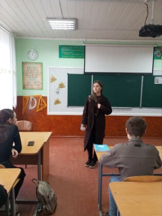 Під час зустрічі з учнями 9–11 класів Вікторія детально розповіла про умови вступу, навчання та оплату, а також про особливості навчального процесу, активне студентське життя і традиції нашого інституту. Вона також познайомила школярів із нашими сторінками у Facebook, Instagram та TikTok.